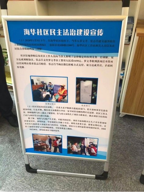海華社區是2012年獲司法部、民政部命名的第五批全國民主法治示範社區。海華社區深入貫徹習近平總書記全面依法治國新理念新思想新戰略,以「法律進社區」為載體,創新開展法治宣傳教育工作,推進「民主法治示範社區」創建活動,保證社區民主建設的正確方向。通過以法治宣傳為切入點,組建法治宣傳骨幹隊伍,建成「法律超市」,全面提高社區居民的法律素質,形成了社區和諧穩定、人民幸福安康的新局面。龍騰社區是2018年獲司法部、民政部命名的第七批全國民主法治示範社區。近年來,在社區黨委帶領下,龍騰社區黨群服務中心結合現代化社區治理共建共治共享社區為目標,設立「一站式」服務前沿陣地,為廣大群眾提供優質、便捷的服務。社區黨委整合各個方面力量開展社區服務,打通聯繫服務群眾的最後一公里,並在服務群眾的工作中突出黨組織的作用,使黨群關係更加密切,社區建設更加和諧。