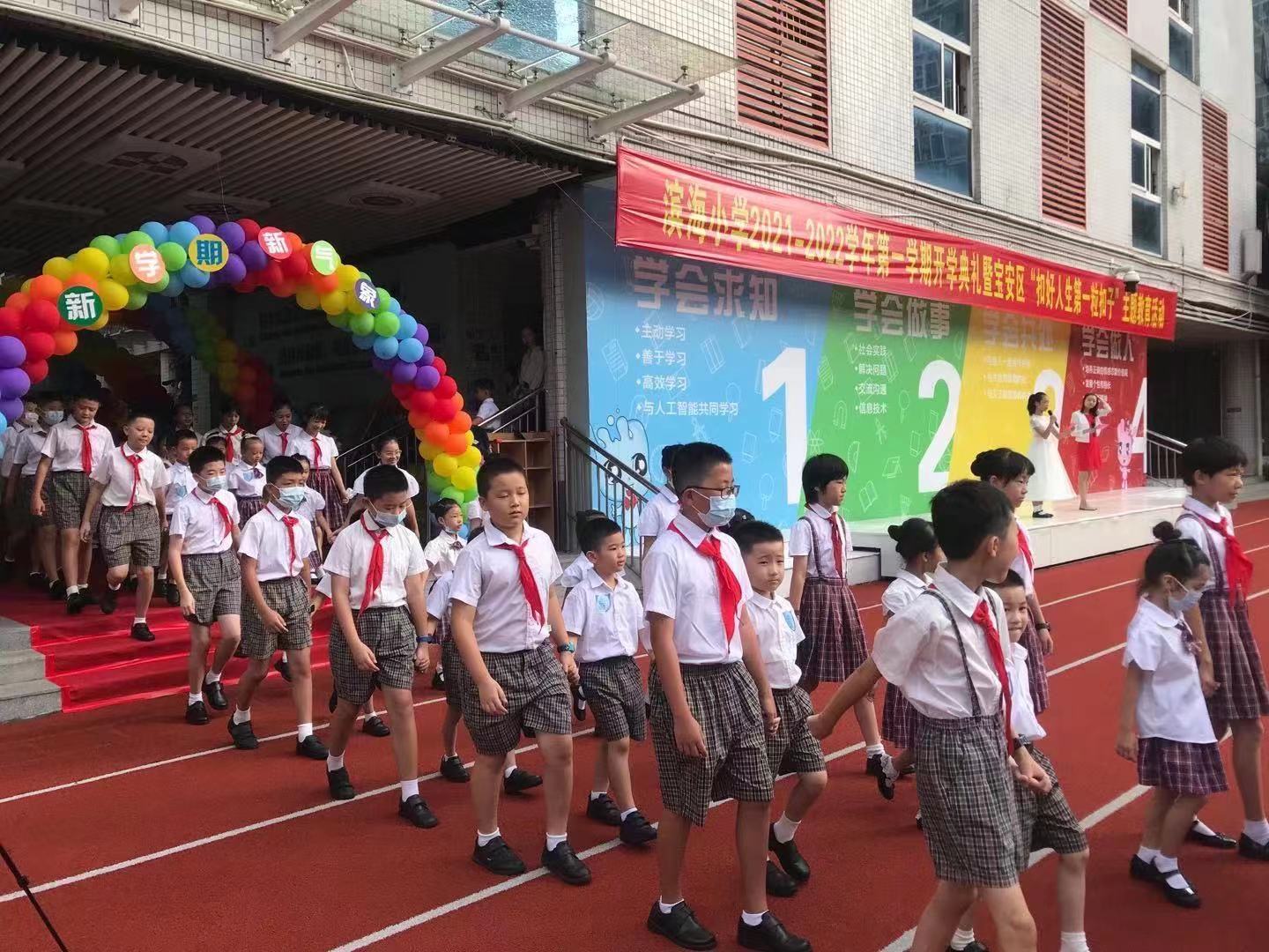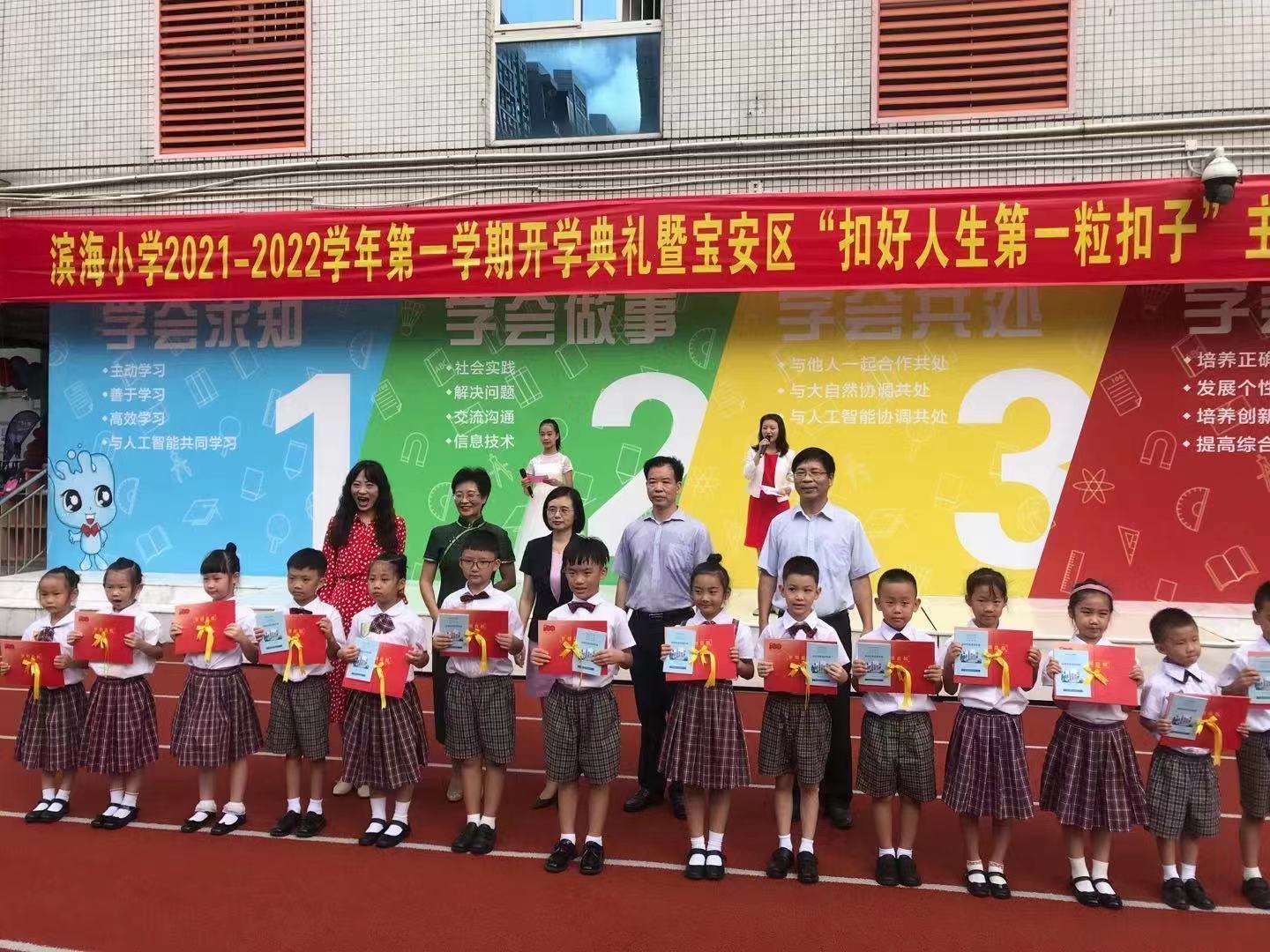 9月1日,深圳寶安區在濱海小學舉行「扣好人生第一粒扣子」主題教育活動暨濱海小學2021-2022學年開學典禮。寶安區文明辦給全區4.4萬餘名小一新生精心準備了賀卡以及《深圳市民文明手冊》,幫助他們「扣好人生第一粒扣子」,號召學生培育和踐行社會主義核心價值觀。