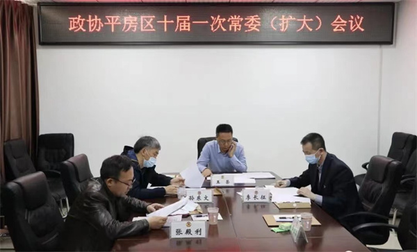 4月15日上午,哈爾濱市平房區政協召開第十屆委員會第一次常委(擴大)會議。按照疫情防控要求,會議採取線上、線下相結合的形式召開。區政協主席王榮主持會議,區政協副主席李長征、孫東文、程立華出席會議,區政協常委會其他成員及各委員活動組組長、副組長通過騰訊會議視頻參加會議。區紀檢監察機構派駐政協機關工作組負責同志列席會議。