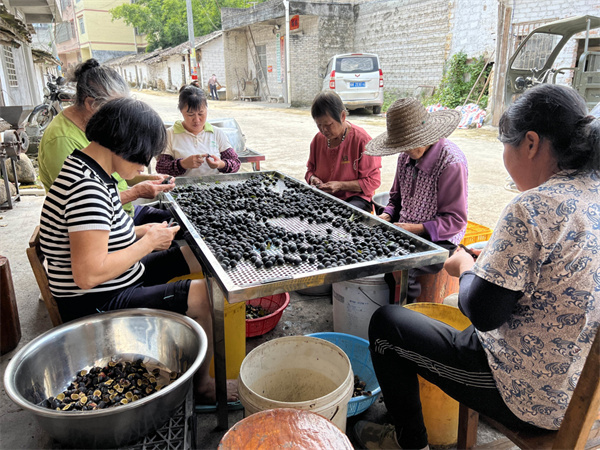 黑欖「渾身是寶」。醃製後黑欖肉質細嫩,不少村民把黑欖肉拿到合作社回收,以此增加收入。黑欖樹結出的工藝欖核大、硬度高、色澤光度鮮亮,用來雕制各種工藝品經濟價值高,根據品質每斤收購價幾百元至上千元不等,市場前景廣闊。