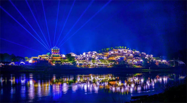 「半邊山江半邊城」則是獨屬於五鳳溪古鎮的美景。走進景區,關聖宮、南華宮、柳溪花澗、黃水河河灣等山水園林景觀透出古典意境,山地古鎮、主題夜遊等特色項目又為這一份詩意增添了幾分人氣。