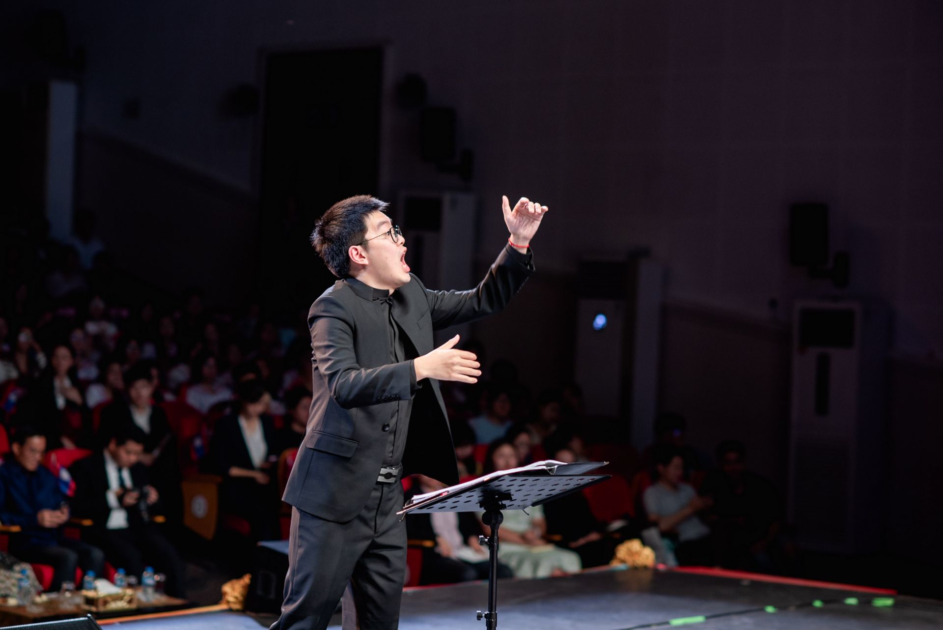 隨着一首激昂歡快的《火!火!》,音樂會序幕正式拉開。隨後,合唱團一氣呵成帶來《夜曲》《貢多拉船歌》等另外兩首西方經典合唱。掌聲未歇,又奉上《海韻》《清平調》《為要尋一個明星》等三首最具藝術價值的中國合唱傑作。乍一開場便呈現了中西方合唱藝術的經典之聲,瞬間調動起現場觀眾的濃厚興趣。