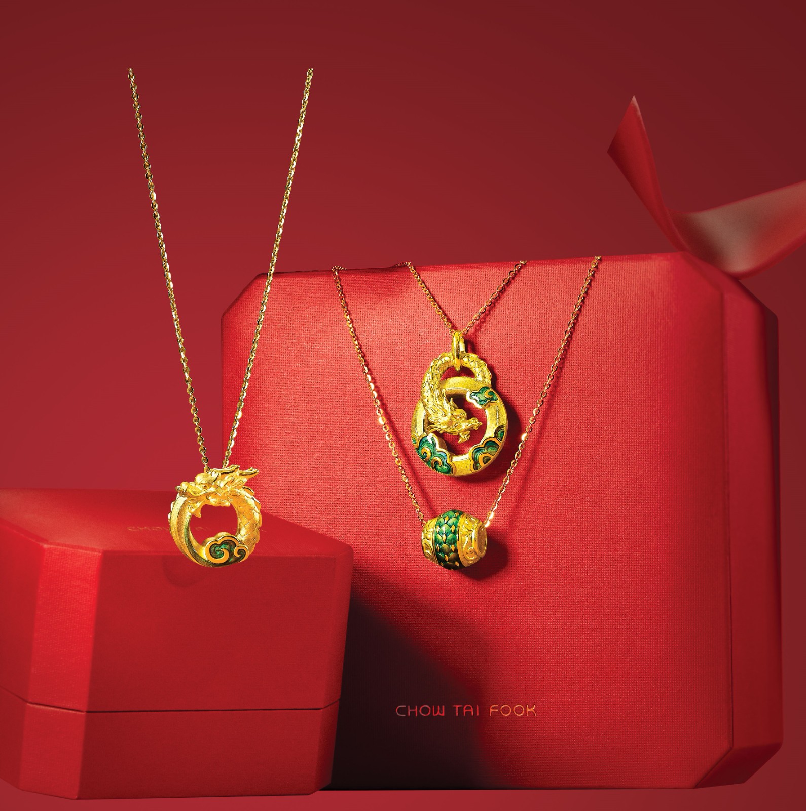 迎春金龍首飾系列推出多款造型吊墜及串飾,寓意吉祥好運的金龍加上琉彩工藝為龍鱗添上顏色,展現工匠的巧妙心思,既能展示佩戴者的個性,又能為新年的打扮增添亮點。