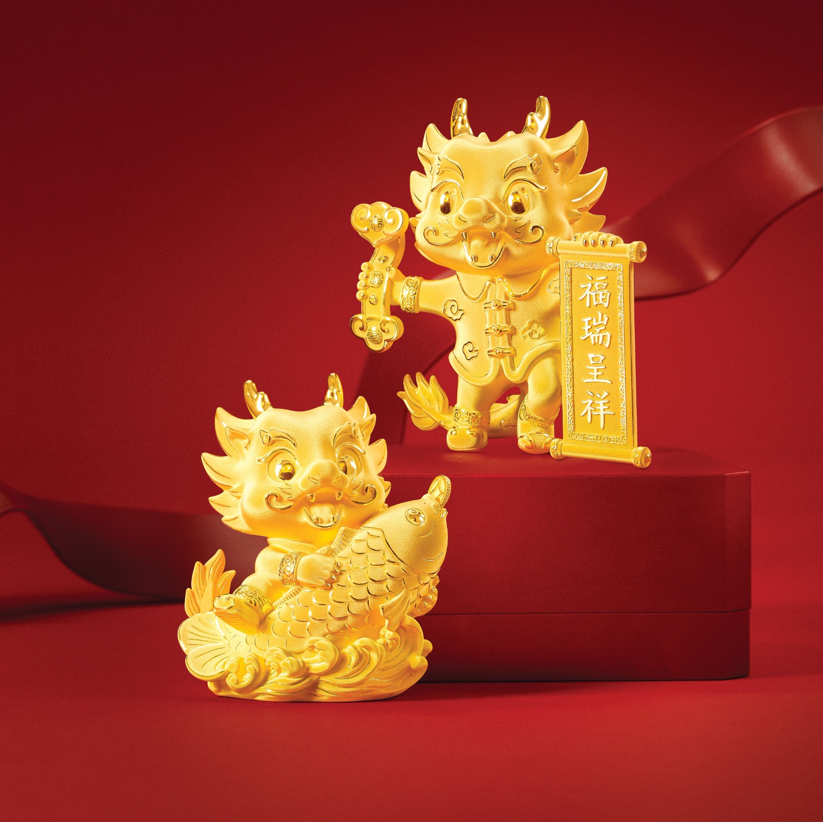 新系列飾品包括擺件、吊墜、金條、嬰兒鎖包和手鏈等,設計不僅富有節日氛圍,更蘊含了中華文化內涵。金龍搭配吉祥物如祥雲、龍珠、鯉魚和金元寶等,象徵着金銀滿屋、好運連連,為新春增添賀年氣息。