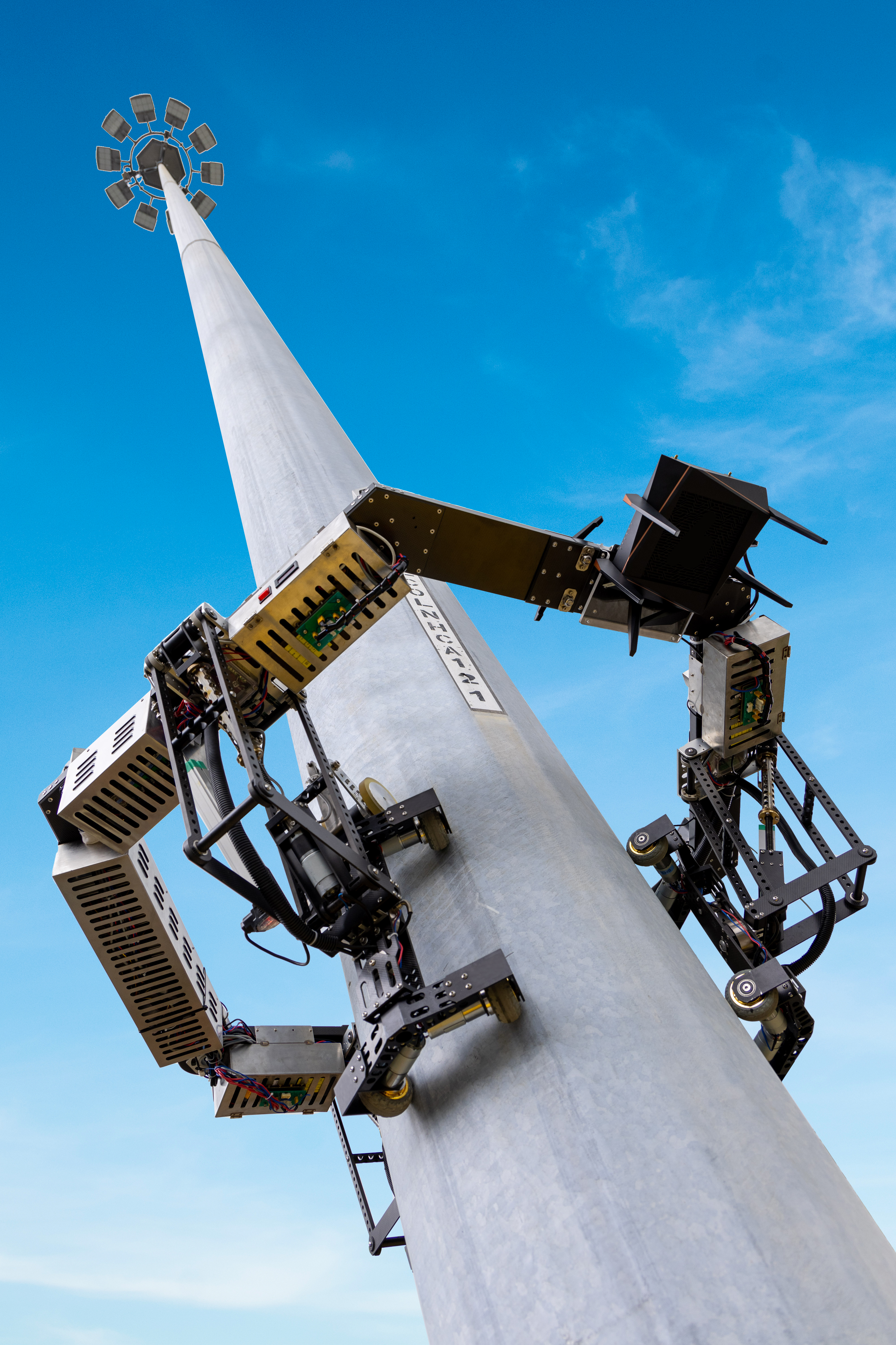 「攀影蜘蛛」是香港首個應用於高桿燈生鏽情況檢測及維護的創新機械人解決方案,可應用機場、橋樑、體育場、高速公路和隧道等不同基建場景。高桿燈生鏽後,如沒有及時進行維護,燈柱金屬表面剝落甚至倒塌將會對行車及行人安全造成重大威脅。機械人靈活的運作模式令工人無需進行高空工作,能夠取代人手檢測工作,同時可以簡化傳統人手檢測所需的封路申請流程,減少因封路造成的經濟影響及不便。
