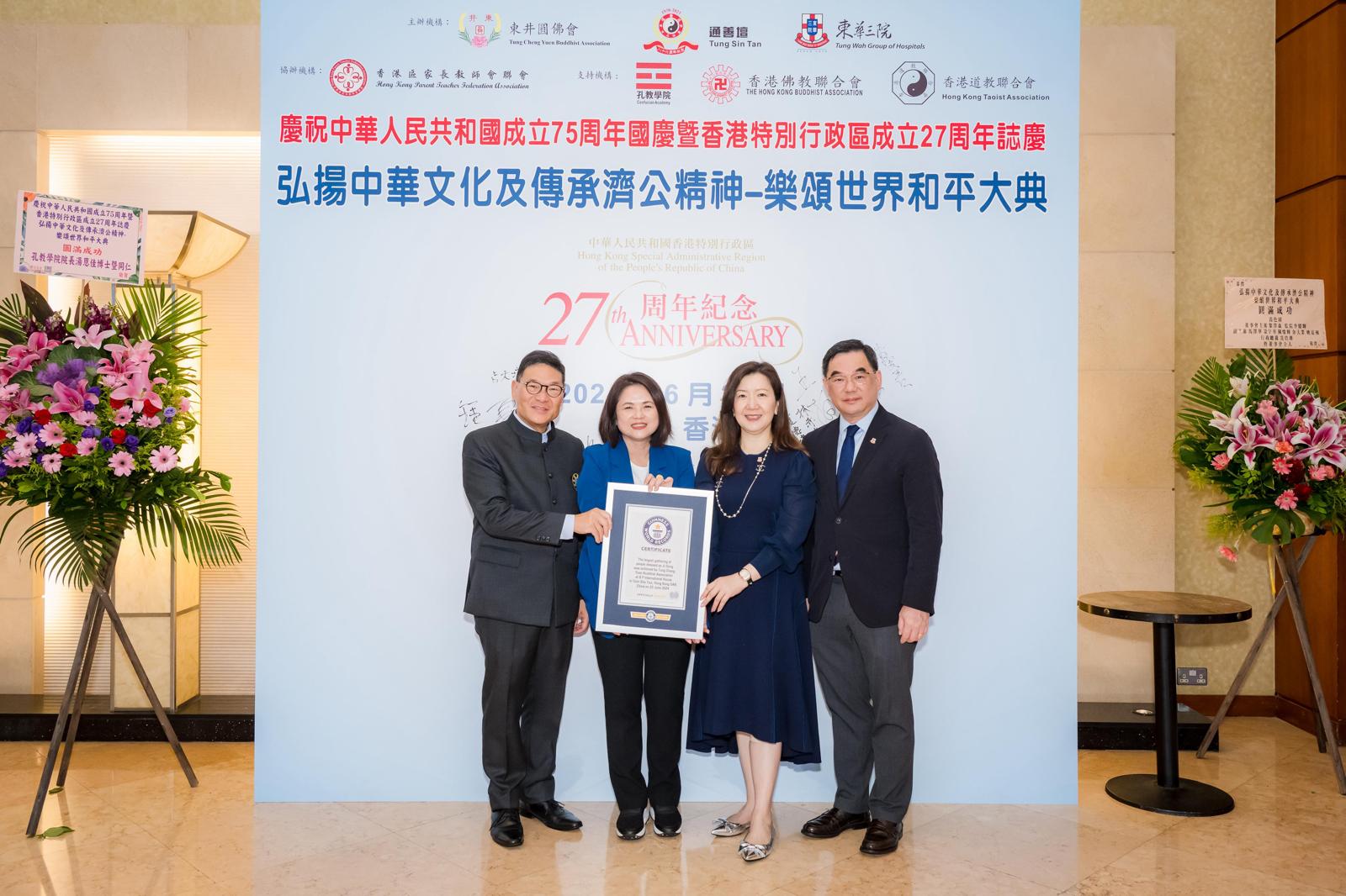 為傳承濟公精神,主辦三方合辦一項最大規模裝扮成濟公的聚會,締造新的世界紀錄。逾730名來自學校、地區組織、宗教團體人士,在活動中一同穿上具8項指定配件的濟公服,即場獲健力士官方機構代表確認及頒贈證書。是次紀錄打破了2019年339/人同時穿濟公服的紀錄。東井圓佛會會長暨美燕表示,刷新的健力士紀錄意義重大,代表着濟公文化的認受性得到進一步提升。