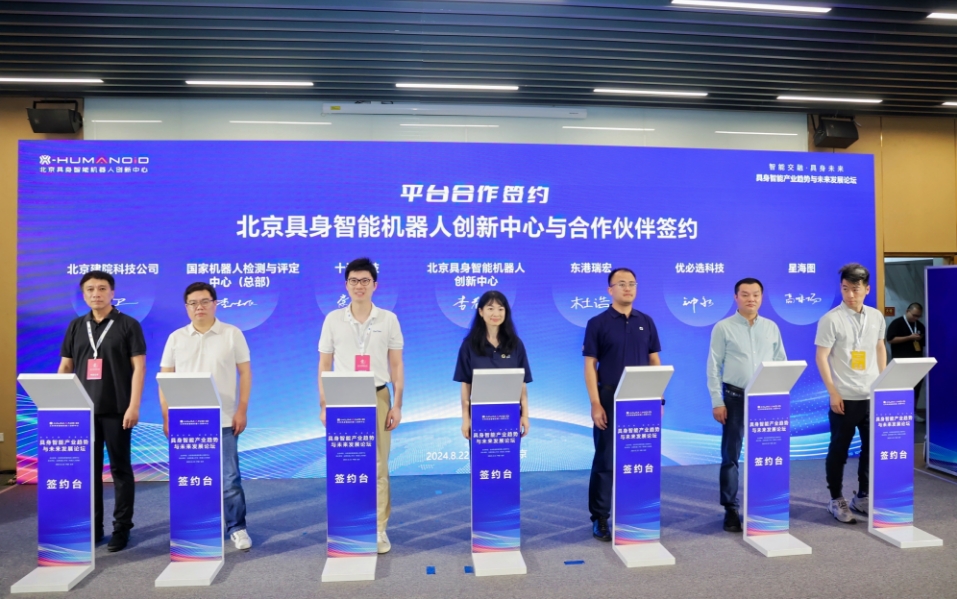 在22日舉辦的2024世界機器人大會「具身智能產業趨勢與未來發展論壇」上,北京亦莊與北京具身智能機器人創新中心、北京智同精密傳動科技有限責任公司、北京螞蟻非標科技有限公司等8家企業簽約。至此,北京亦莊在本屆機器人大會累計簽約22個重點項目,主要覆蓋具身智能生態、零部件+智能製造兩大板塊。此外,北京亦莊機器人科技產業發展有限公司作為平台公司還現場簽約了鈦虎人形機器人項目、憶海原識靈巧手項目等5個項目,將落地位於北京亦莊經海五路3號院的北京機器人產業園。