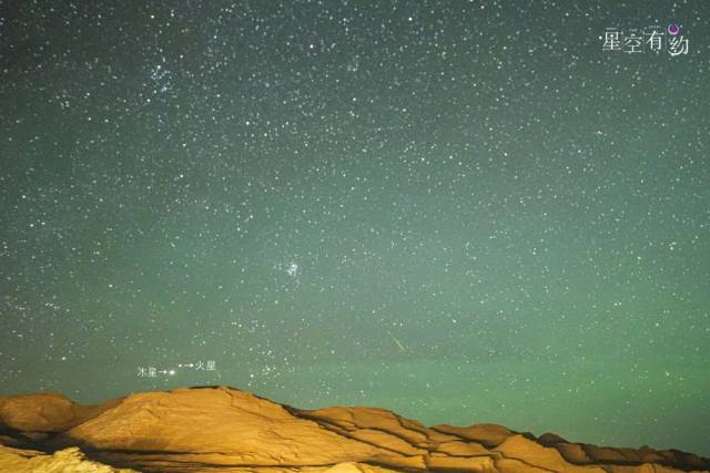 這是2024年8月13日在新疆哈密大海道拍攝的剛升起的火星和木星。(星空攝影師王俊峰 攝)