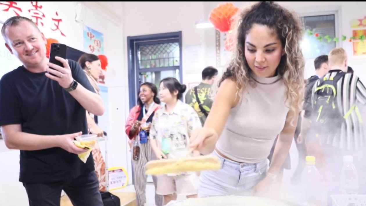 2024國際青年交流大會暨中美青年交流營「齊魯文化之旅」泰安站雅集活動在岱嶽區臥虎山小學舉辦,中美青年交流營學生共計200餘人參加。中美青年交流營學生親身體驗剪紙、書法、拓印技藝,近距離感受中國傳統文化的魅力。(記者 侯寶之)