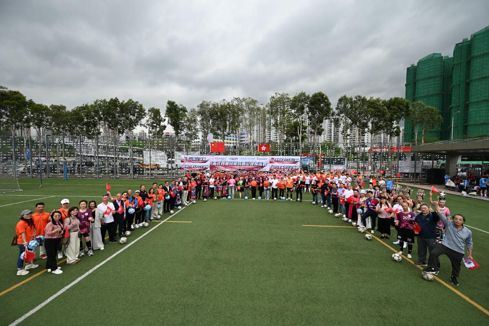 香港貴州商會與香港漁村代表聯會日前假大埔廣福公園足球場聯合主辦「兩岸四地同根同源足球友誼 賽」來自香港、澳門、台灣及貴州的五十餘名球員在綠茵場上奮力拼搏,以精湛球技展現同根同源的團結精神。近二十位主禮嘉賓、三十多名表演者及百多名熱情觀眾齊聚一堂,共同見證這場跨越地域的體育文化盛事。