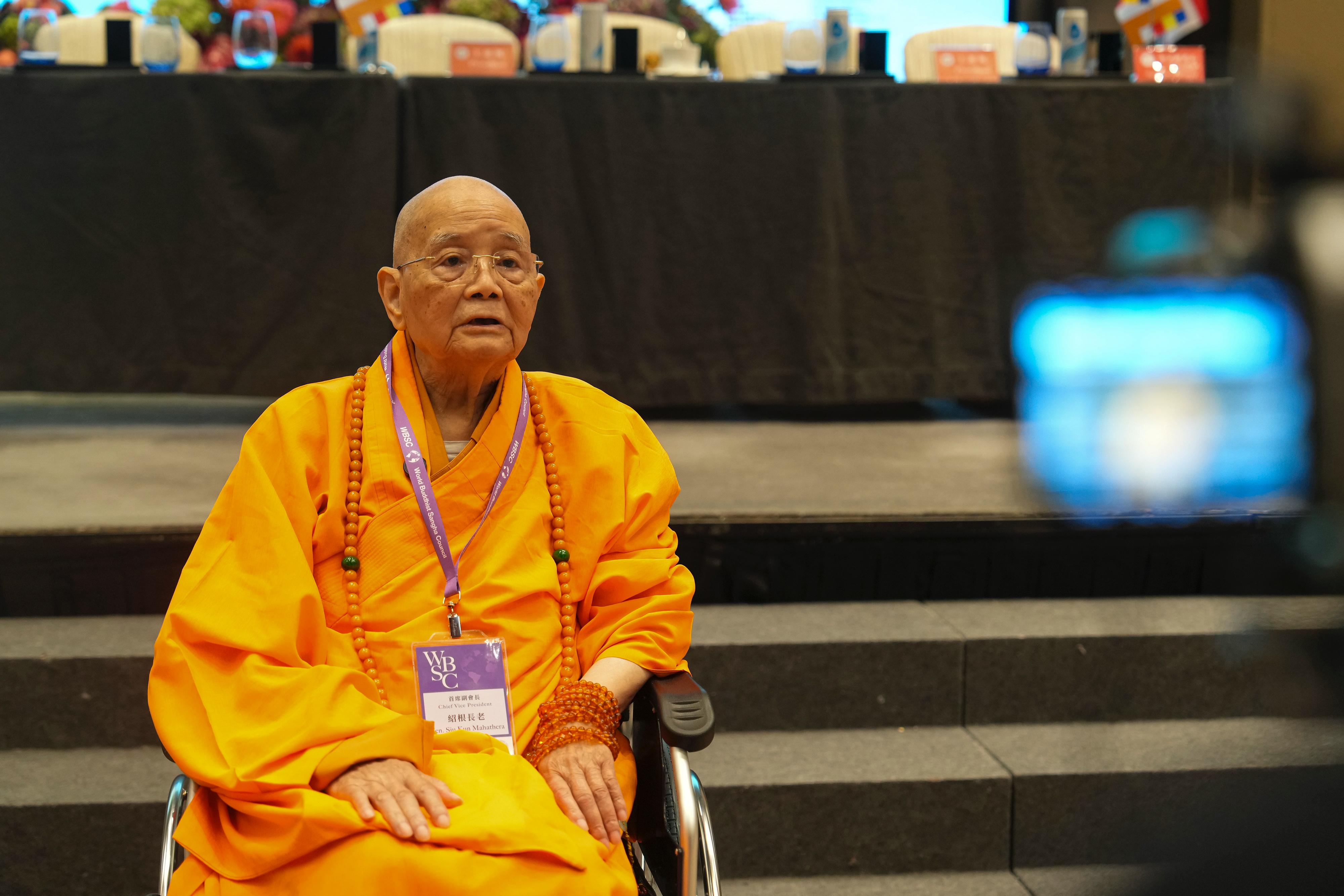 主辦單位楞嚴精舍主持紹根長老在會上為世界各地送上祝福。他表示,我們申辦這次世界佛教僧伽會,在香港召開這次小組會議,目的希望宣揚佛教的慈悲大願。希望大衆和諧相處,多點宣傳佛教的慈悲大願,希望這個世界和平,不要戰爭殺戮。