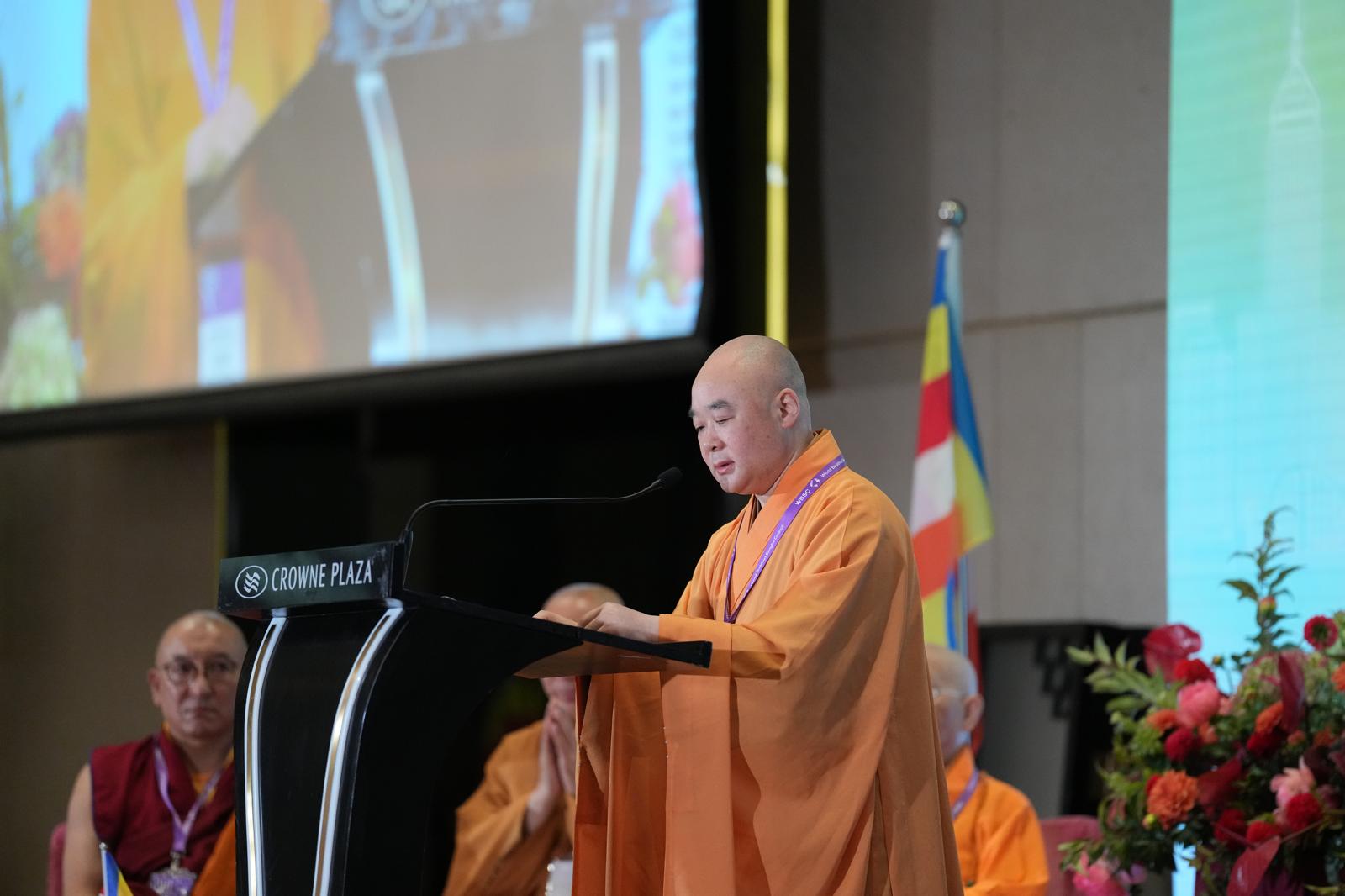 寬運大和尚在開幕式致辭中指出,本屆會議以「善念永續 世界共好」為主題,目的是向世界帶出世人要善護內在的善念,方能達致世界共好的重要信息。他提到,香港佛教代表團在剛過去的10月參加了第六屆世界佛教論壇,主題是「同願同行 和合共生」;兩次會議在提升世人福祉方面的貢獻,有同工異曲之處;他強調,因為佛教認為世界和諧才能共好;要達致和諧共好的關鍵,在於我們有永續善念的心,也就是大慈大悲的心;尤其在現今人心紛亂、干戈不斷的國際時局下,我們佛教界對於宣導「世界共好」可以起着重要的作用。