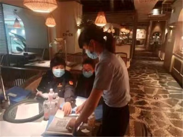 通過現場檢查發現,多數區內餐飲單位都能夠切實做到從業人員「一穿三戴」、晨檢和持有效的健康證上崗,做好掃碼測溫,後廚及就餐環境乾淨整潔,履行進貨查驗義務,有效落實餐飲用具的清洗、消毒工作。但仍有少數餐飲單位存在食品原料落地擺放、生熟食品未分開儲存擺放、垃圾桶蓋未及時關閉消毒、進貨台帳信息記錄不全等現象。經過現場實地督導,目前相關經營者已經當場進行整改。