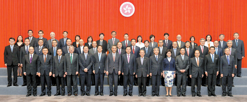 他贊揚本屆特區政府組建以來,在梁振英特首的領導下,大家共同努力,認真地貫徹「一國兩制」方針,認真地貫徹「港人治港」、「高度自治」,認真地貫徹《基本法》,從香港實際出发,努力地開創工作的新局面,在不斷克服困難中,穩步地前進。