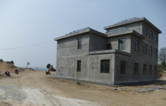 记者注意到新建别墅的有趣一幕,一边尚未粉刷的水泥墙上写着红色“拆”字,另一边工人正在忙碌的施工。记者问,这是怎么会事?工人们回答:“写着玩的。”