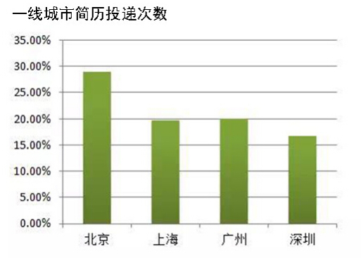 現居上海的求職者中有20%將簡歷投遞到北京,這一數字遠遠高于投遞到本地的14%。