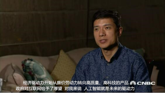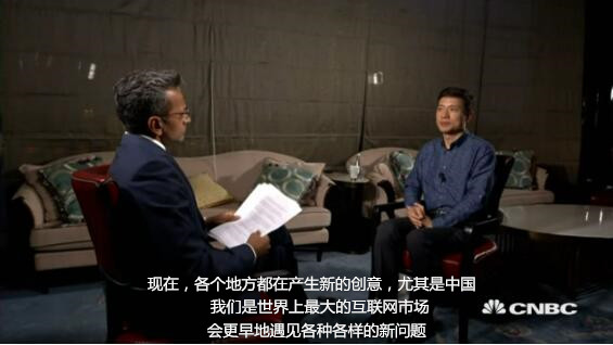 CNBC主要就中國經濟轉型、政策法規與市場發展,以及中國創業創新環境區別於矽穀的地方等進行了采訪,此外還提到了人工智能將對互聯網行業乃至整個經濟格局的變革。