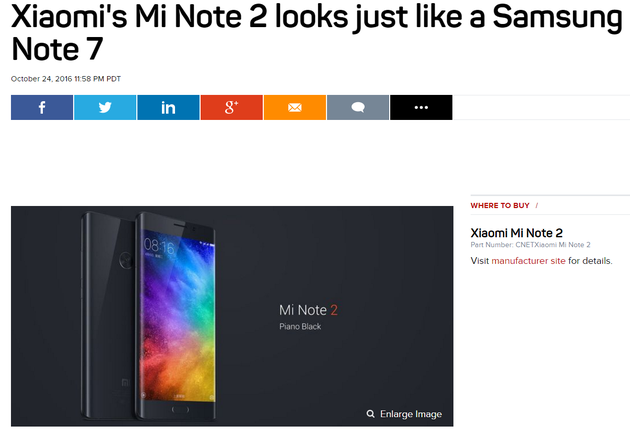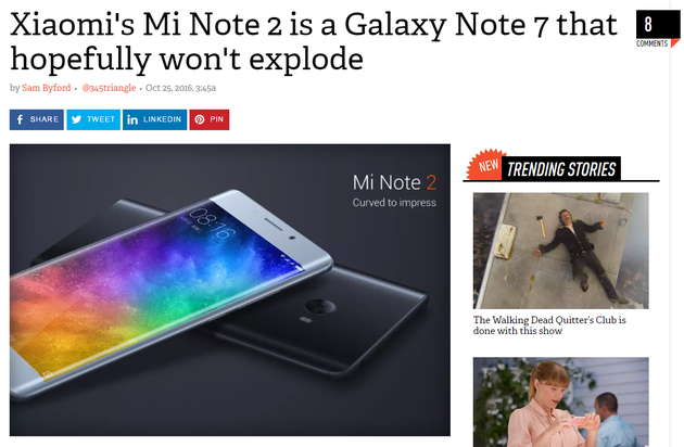 The Verge:小米Note 2就是個三星Note 7,希望不會爆炸。