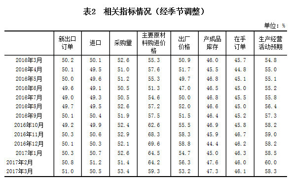 2017年3月中国制造业采购经理指数和非制造业商务活动指数双回升