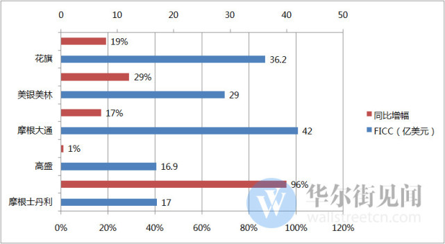 而高盛此次表現最差的就是固收業務。在其他投行固收業務收入均達到兩位數增長的情況下,高盛固收業務收入僅增長1%。