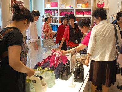 圖說:大陸遊客在洛杉磯名牌直銷中心掃購 美國《世界日報》 楊青 攝
