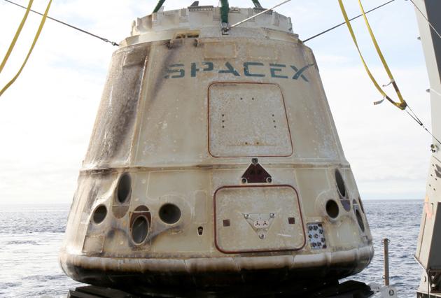 在國際空間站停留近一個月之後,Dragon帶回許多實驗結果和其它貨物,太空艙利用降落傘返回地面,成功降落,帶回的東西保持完好,可以供地面研究人員分析。