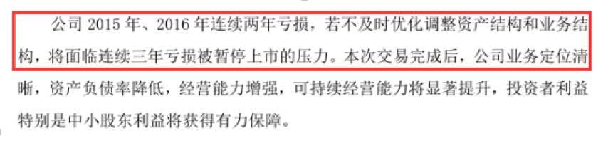 “1元交易”正是在这种背景下发生的。沈阳机床列举的交易原因中就包括“2015年、2016年连续两年亏损,若不及时优化调整资产结构和业务结构,将面临连续三年亏损被暂停上市的压力”下图为面包财经对沈机机床公告的截图: