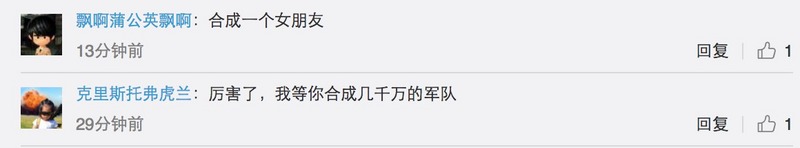 还有一部分就是看热闹不嫌事儿大的吃瓜群众,玩笑称“合成一个女朋友。”、“我先预定一个新垣结衣。”