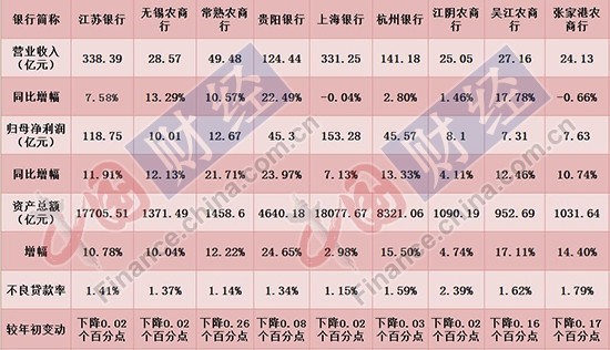 经济新常态、行业强监管环境下,9家银行上市后第一个整年的业绩备受市场关注。江苏银行、贵阳银行、上海银行、杭州银行、无锡农商行、江阴农商行、常熟农商行、吴江农商行、张家港农商行等2016年新上市的9家银行近日相继披露了2017年业绩快报。