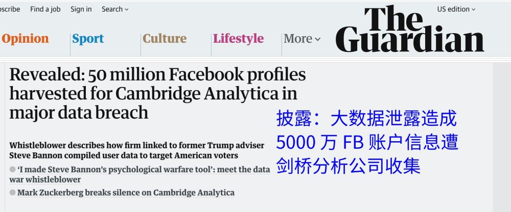 據 Wylie 小哥說,劍橋分析通過某種途徑獲得了 FB 上 5000 多萬人的私人信息,並在上一次美國大選期間悄咪咪地將這個龐大的數據庫用在了政治宣傳上,在民眾沒有察覺的情況下,潛移默化地影響了全美至少四分之一的潛在選民。