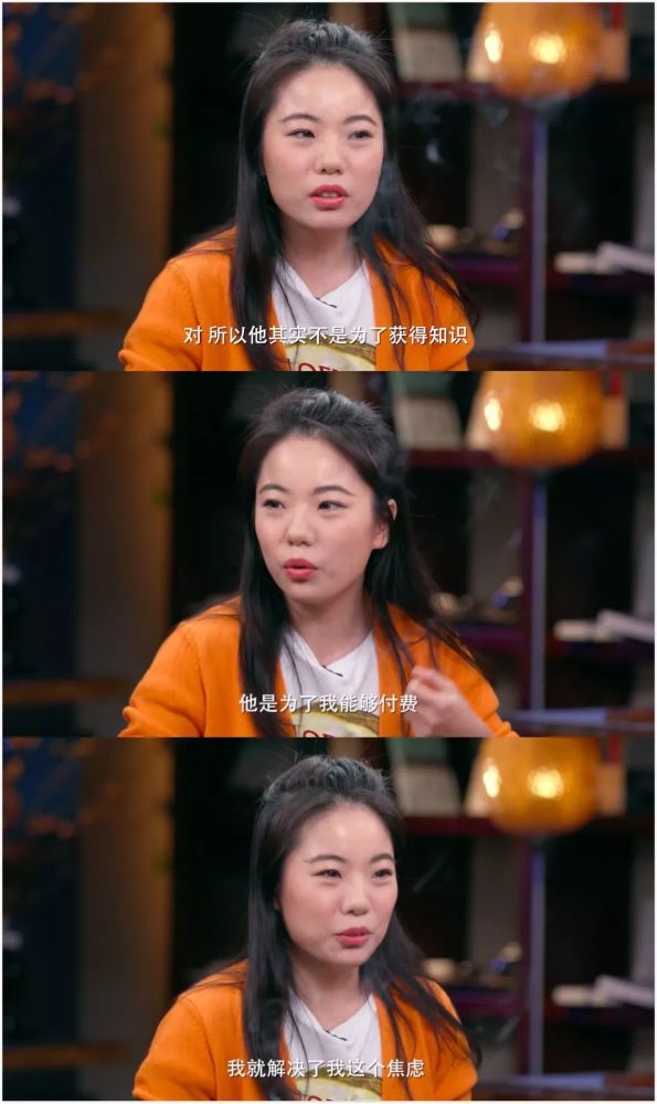 蔣方舟:對,所以他其實不是為了獲得知識,他是為了我能夠付費,我覺得付費了之後,我就解決了這個焦慮。