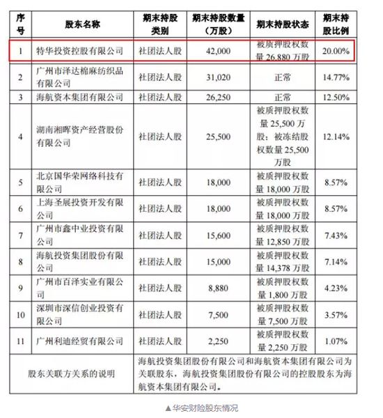 除了上市公司股权,特华投资控股也对华安财险进行了质押,共计质押2.69亿股,占所有持股的64%。