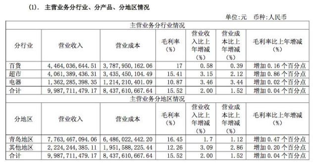 但这些改变够吗?市界发现,上市首份年报数据显示百货、超市及电器三项业务在2017年的营收占比分别为44.6%、40.6%和13.62%,与招股书披露数据尚无太大区别。