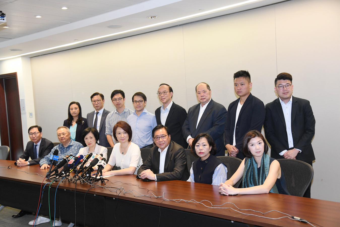 39位建制派立法會議員昨日召開記者會,發表聯署聲明,並由李慧瓊宣讀。聲明指出,對於接連有社會人士分別在尖沙咀、上水、油塘、屯門及沙田等地區以遊行提出社會訴求,但期間或其後造成警民衝突,社會秩序已然遭到破壞,市民正常生活已然受到嚴重干擾,更有多名警員受傷,而且前晚更有報道有警員被咬斷一節無名指、面骨及眼骨爆裂等,他們向受傷警員予以深切慰問,同時呼籲香港各界人士必須謹守和平理性處理社會問題,亦必須對此種一連串違法暴力行徑甚至嚴重傷人行為予以最嚴厲譴責。