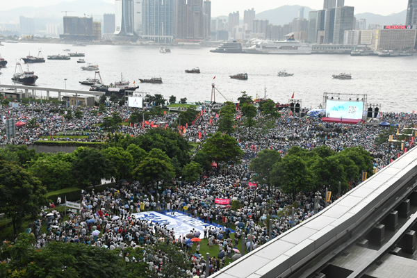 反對派不斷借修訂《逃犯條例》為藉口,近期不斷發動示威,甚至演變成於各區發生的暴力衝擊。由社會各界別、各階層,人大代表、政協委員、立法會議員、地區團體等各界人士組成的守護香港大聯盟,昨日在金鐘添馬公園舉行「守護香港」大會,表明反對暴力、守護家園的立場。