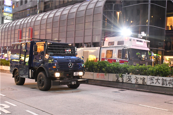 尖沙咀昨日有未經批准集會,大批示威者佔據梳士巴利道,警方於驅散時遭暴徒襲擊,一度施放催淚彈及胡椒噴劑驅散。 中通社