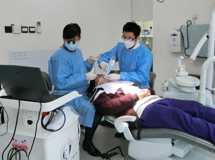 陳奕朗醫生(右)與余倩華醫生義務為阿麒做牙齒治療。特約記者劉楚婷攝