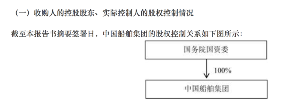 收購報告書顯示,中國船舶集團系國有獨資公司,由國務院國資委代表國務院履行出資人職責,國務院國資委為中國船舶集團唯一出資人和實際控制人。中國船舶集團于2019年11月8日設立,為中船工業集團和中船重工集團實施聯合重組而新設,具備國家授權投資機構資格。