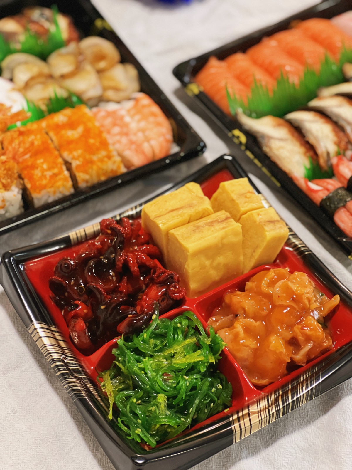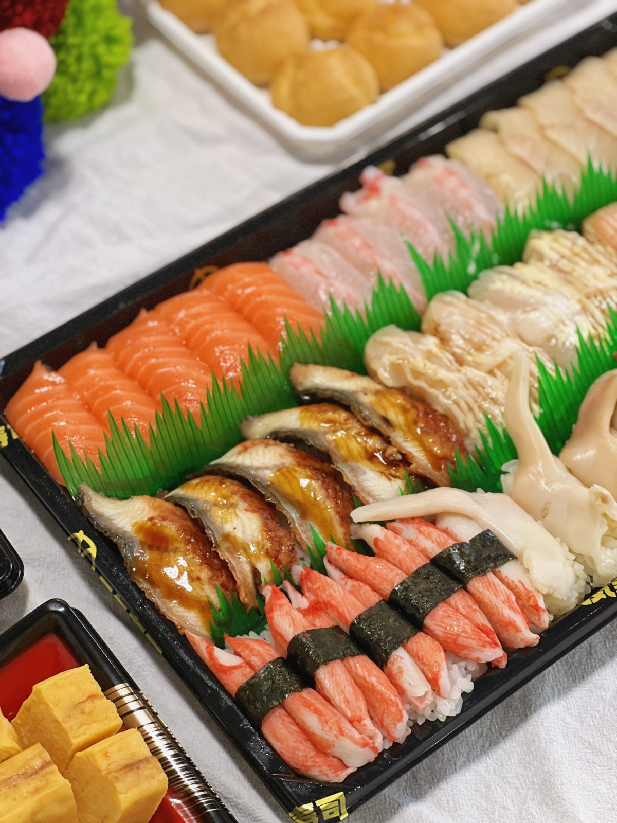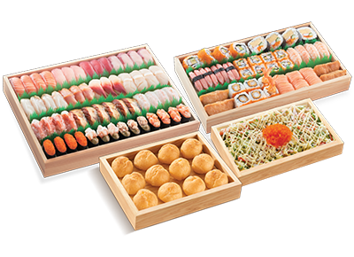 難以選擇派對要吃的壽司?店舖搭配多款人氣壽司,組合成兩大皇牌壽司盛派對組合「狂歡派對盛」及「歡樂派對盛」。兩款壽司盛集合多款人氣壽司及卷物,包括大切三文魚、蒲燒鰻魚、皇帝蟹柳、炸蝦卷等,還有前菜及甜品迷你泡芙,適合與親朋好友歡聚分享豐富的壽司盛宴。