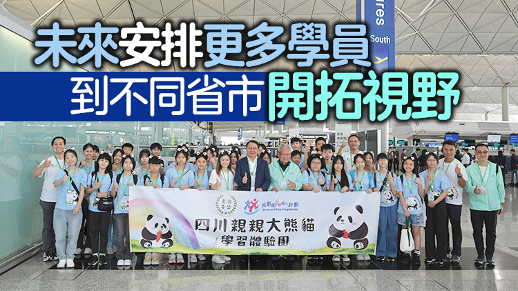 「共創明『Teen』計劃」四川親親大熊貓學習體驗團今早(7日)在香港國際機場出發,到四川進行為期4日的交流,政務司司長陳國基到場送行。陳國基表示,學員有機會了解四川的發展及熊貓保育工作,有助開拓視野;參與的學員亦要交「功課」,回港後要分享四川交流細節。有學員指難得有機會看熊貓,覺得今次交流很重要;亦有學員表示第一次坐飛機及離開家人出外,心情激動。