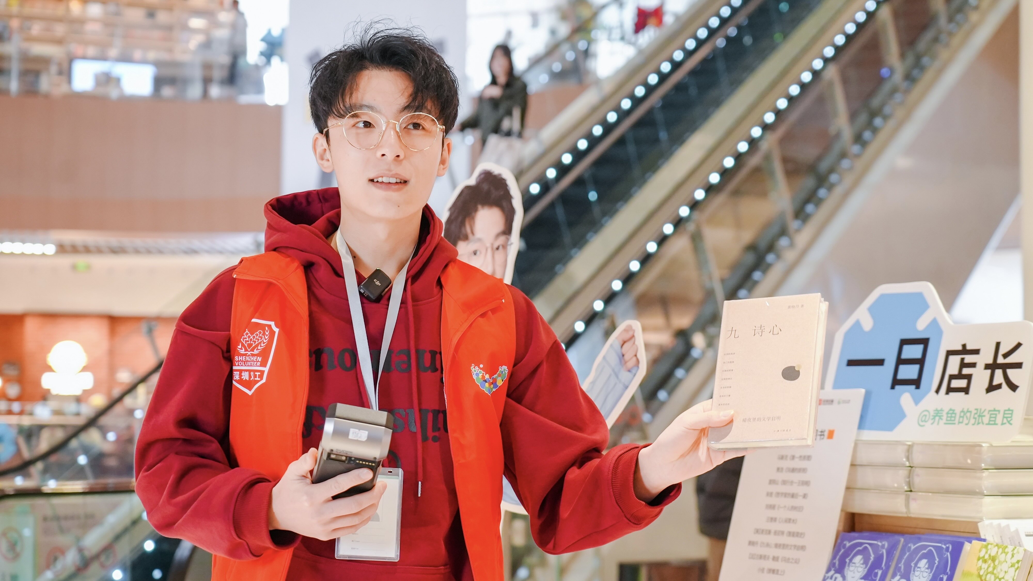 現場,張宜良以「一日店長」的身份出現在灣區之眼的圖書展台。從 POS 結賬到圖書堆碼,再到向顧客推銷圖書,他憑借幽默風趣的講解和專業的知識背景,吸引了眾多顧客的目光。張宜良在分享中提到:「自我認知的構建需要足夠的經歷支撐,而每一次嘗試都是拓展自我認知邊界的機會。」他用自己的行動證明了,只有不斷嘗試新事物,才能真正了解自己的潛力和方向。