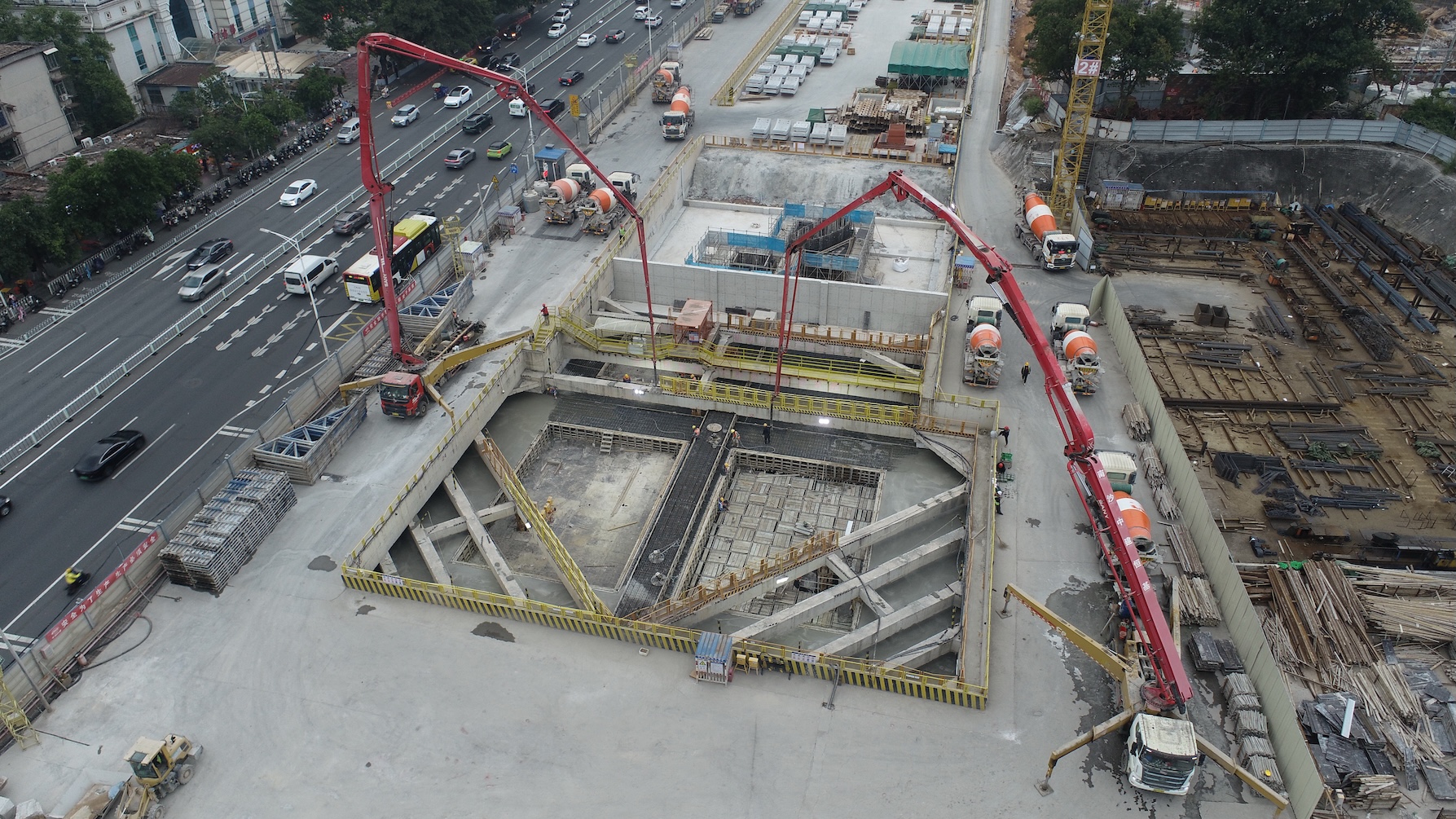 受複雜地質條件影響,京溪路站建於地下48米深處,是全線最深的車站,施工難度大、安全風險較高。為確保施工安全,廣州地鐵會同參建單位多次邀請行業專家「問診把脈」,深入分析和優化施工組織方案,並重點加強基坑變形、周邊地下水位情況的科學監測,有效控制基坑變形。同時,採用微差爆破與靜力爆破相結合的方式,降低施工對周邊建築和管線的影響,確保車站周邊建(構)築物結構安全穩定。