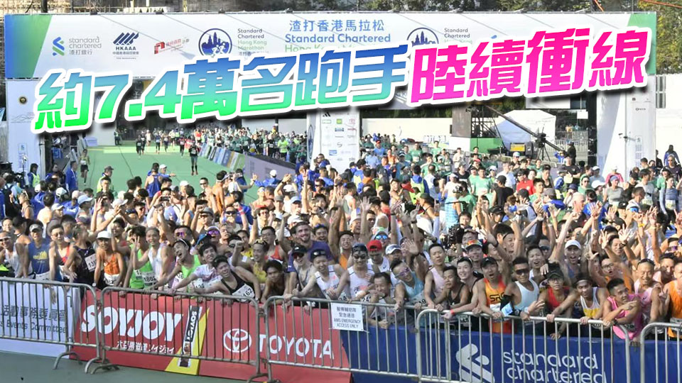 渣打香港馬拉松2026今晨(18日)開跑。賽事吸引約7.4萬名跑手參與,各組別已由清晨5時10分起陸續起跑。其中,全程馬拉松及半程馬拉松的跑手從尖沙咀彌敦道出發,而10公里賽事的跑手則以東區走廊為起點,終點全部設於維園。