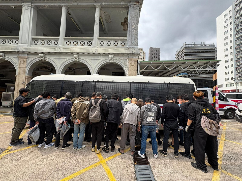 人員在單位內拘捕一名姓程(60歲)本地男子,涉嫌「經營毒窟」及「販運危險藥物」;單位內另外22名本地男子,年齡介乎32至70歲,則涉嫌「服食或注射危險藥物」被捕。所有被捕人現正被扣留調查。