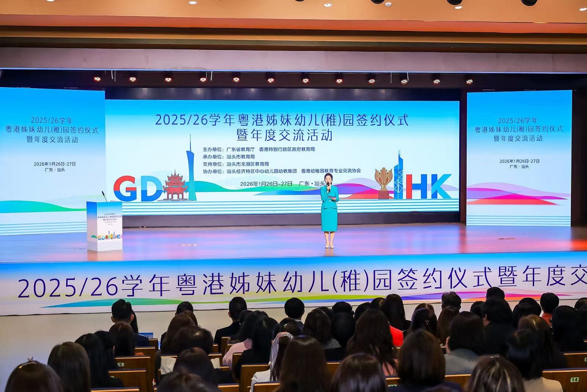 1月26日至27日,2025/26學年粵港姊妹幼兒園(稚)園簽約儀式暨年度交流活動在汕頭市舉行。本次活動由廣東省教育廳、香港特別行政區政府教育局聯合主辦,汕頭市教育局承辦,龍湖區教育局支持,汕頭經濟特區中心幼兒園幼教集團、香港幼稚園教育專業交流協會共同協辦,來自粵港兩地的200餘名幼兒園代表參與其中。