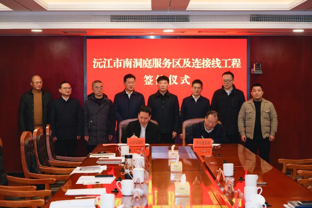 1月27日,沅江市人民政府與湖南省高速集團就南洞庭服務區及連接線工程舉行簽約儀式。湖南省高速集團總工程師周棟樑,益陽市交通運輸局黨組書記、局長楊正才,沅江市委書記羅必勝出席,儀式由沅江市委副書記廖江華主持,沅江市領導譚洪祥、雷亮、徐鄂春參加。