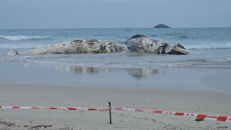 初步檢視顯示,屍體全長約11米,因嚴重腐爛,無法進一步解剖以確定死因。工作人員正盡快進行屍體棄置及現場清理工作,預計明日完成。期間,市民應避免前往該處,以免妨礙屍體棄置工作並造成危險。