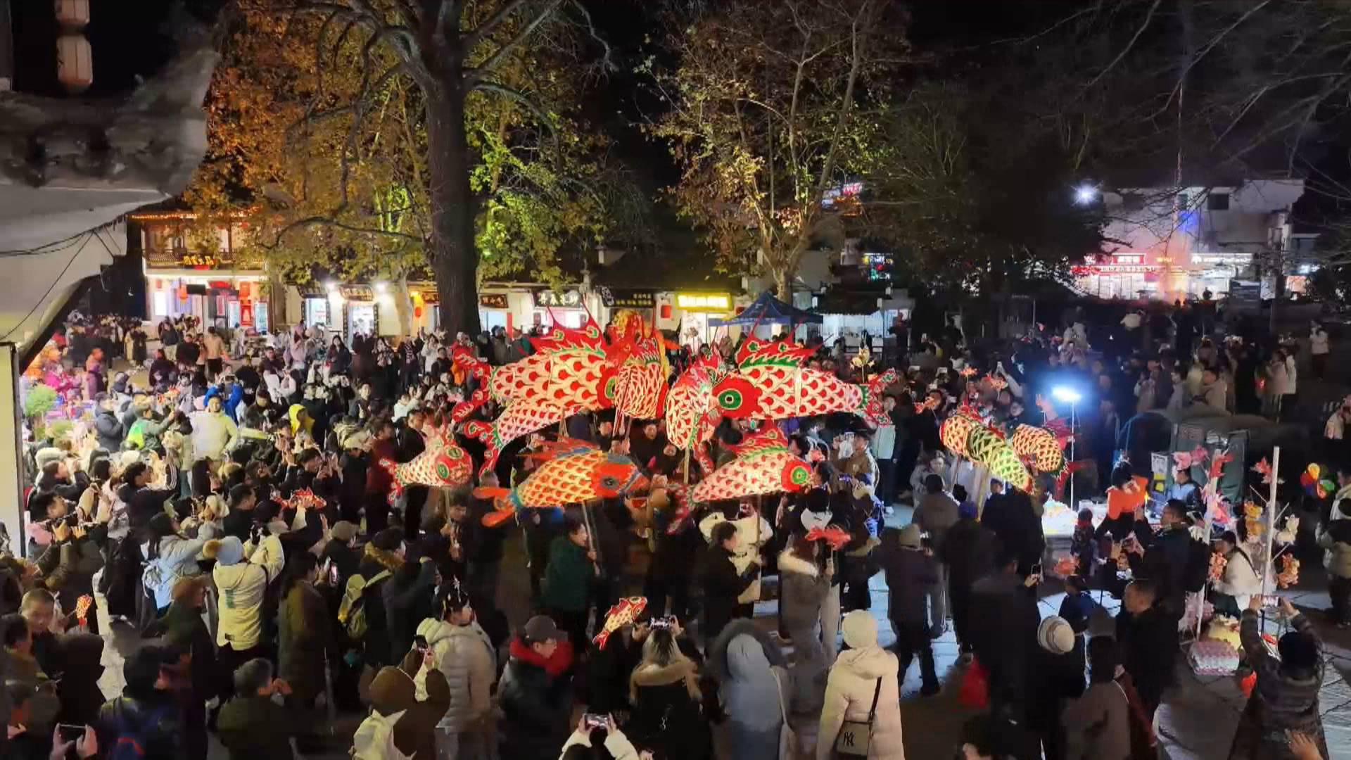 年豬宴,不只是一頓熱鬧的團圓飯,更是徽州民俗的活態傳承。「過了臘八就是年,鼓聲一響年味濃。」在屏山村,長寧社鼓隊伍穿行天燈弄等古巷,鏗鏘鼓聲穿透黛瓦粉牆,引得村民遊客駐足跟隨。在宏村南湖畔,專業巡遊隊伍與村民、遊客手持非遺花燈,穿梭在青石板巷,共赴迎新盛宴。在西遞,融合非遺技藝展示與鄉土市集的「村碗」宴席,為遊客提供了可品、可看、可感的沉浸式新春文化體驗。