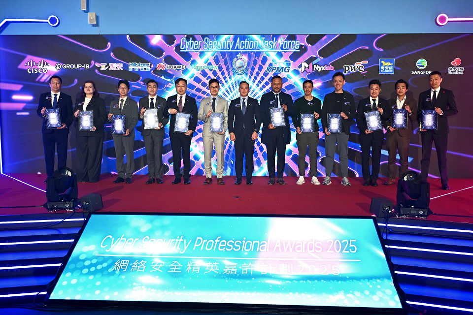 警方今日(30日)舉辦「網絡安全精英嘉許計劃 2025」頒獎典禮,向64名得獎者及19間機構獲頒發獎項,表揚他們在網絡安全方面的卓越成就。