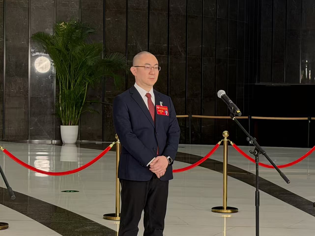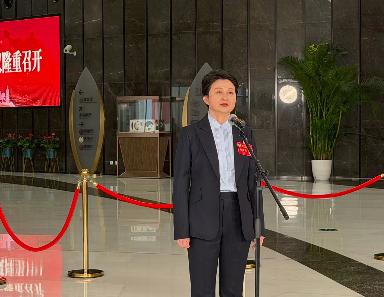 頂圖:保海燕在委員通道上接受傳媒訪問